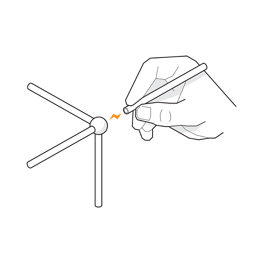 As Barras e Diagonais têm ímãs em suas extremidades, e esses ímãs devem ser posicionados de forma que as partes se conectem entre si.