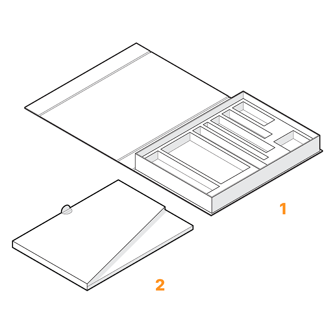 Com estrutura de papel e espuma, lembrando a textura e aparência de um livro, a caixa garante que o produto se mantenha protegido e organizado, tudo isso com um design compacto que pode ser colocado em sua prateleira ou em sua mochila.