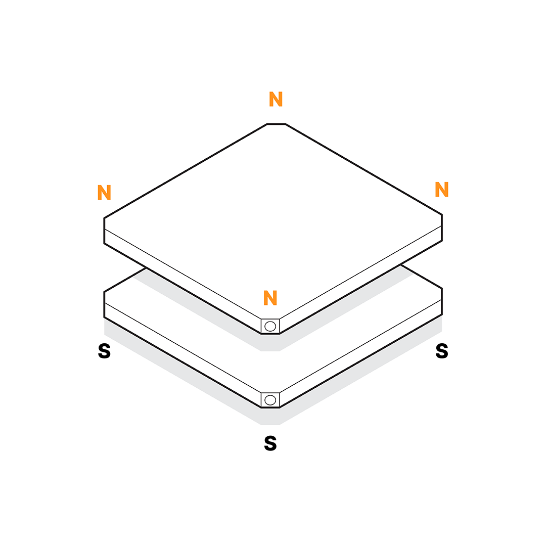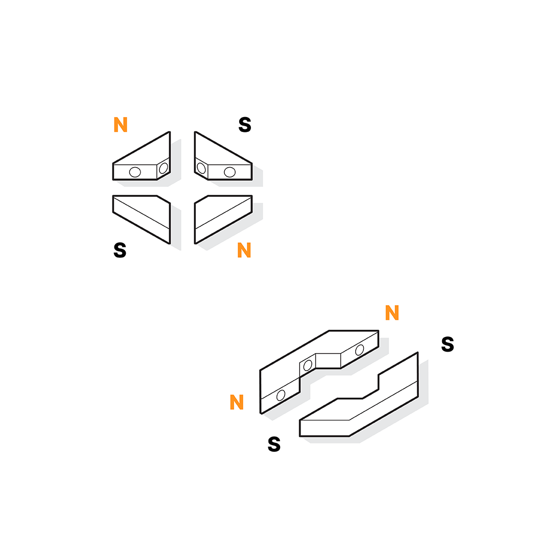 Dessa forma, cada barra ou diagonal tem extremidades com polaridades magnéticas opostas (N, polo norte e S, polo sul). Dessa maneira, se duas partes estiverem se repelindo, simplesmente inverta uma delas para que encaixem.