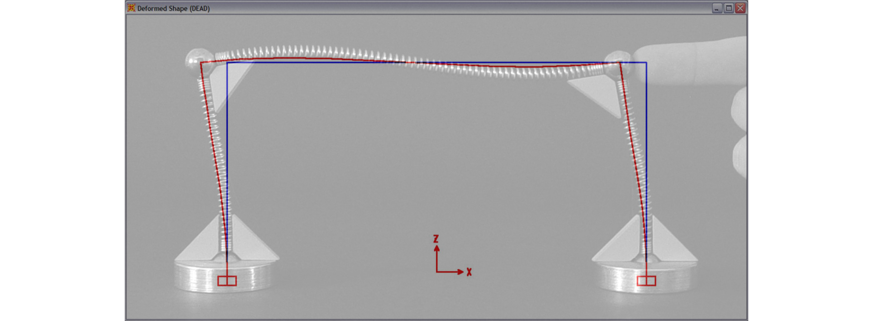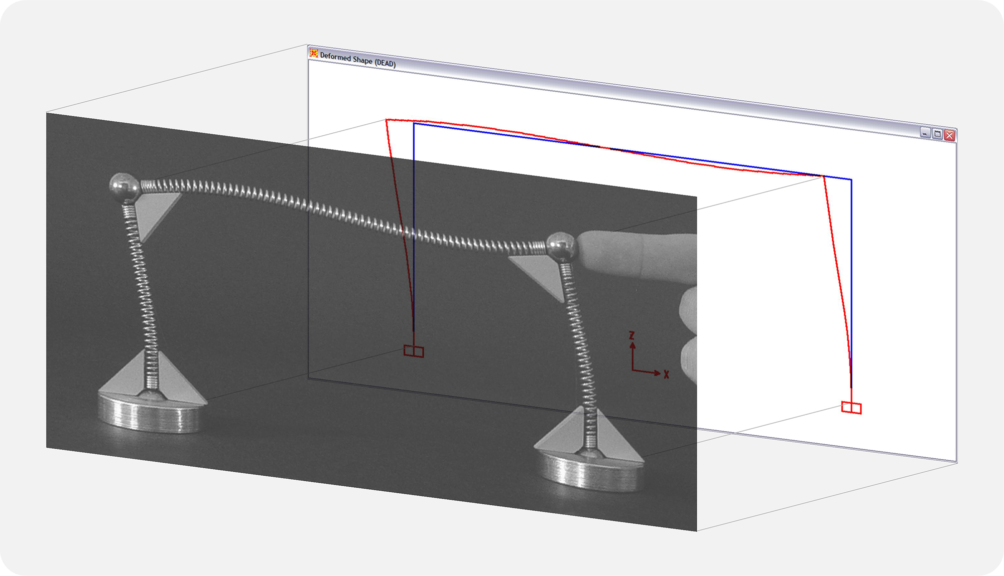 Para validar o sistema, foi desenvolvida uma metodologia experimental que compara a configuração deformada do Mola com a deformação de estruturas reais simuladas utilizando o software de análise estrutural SAP2000.