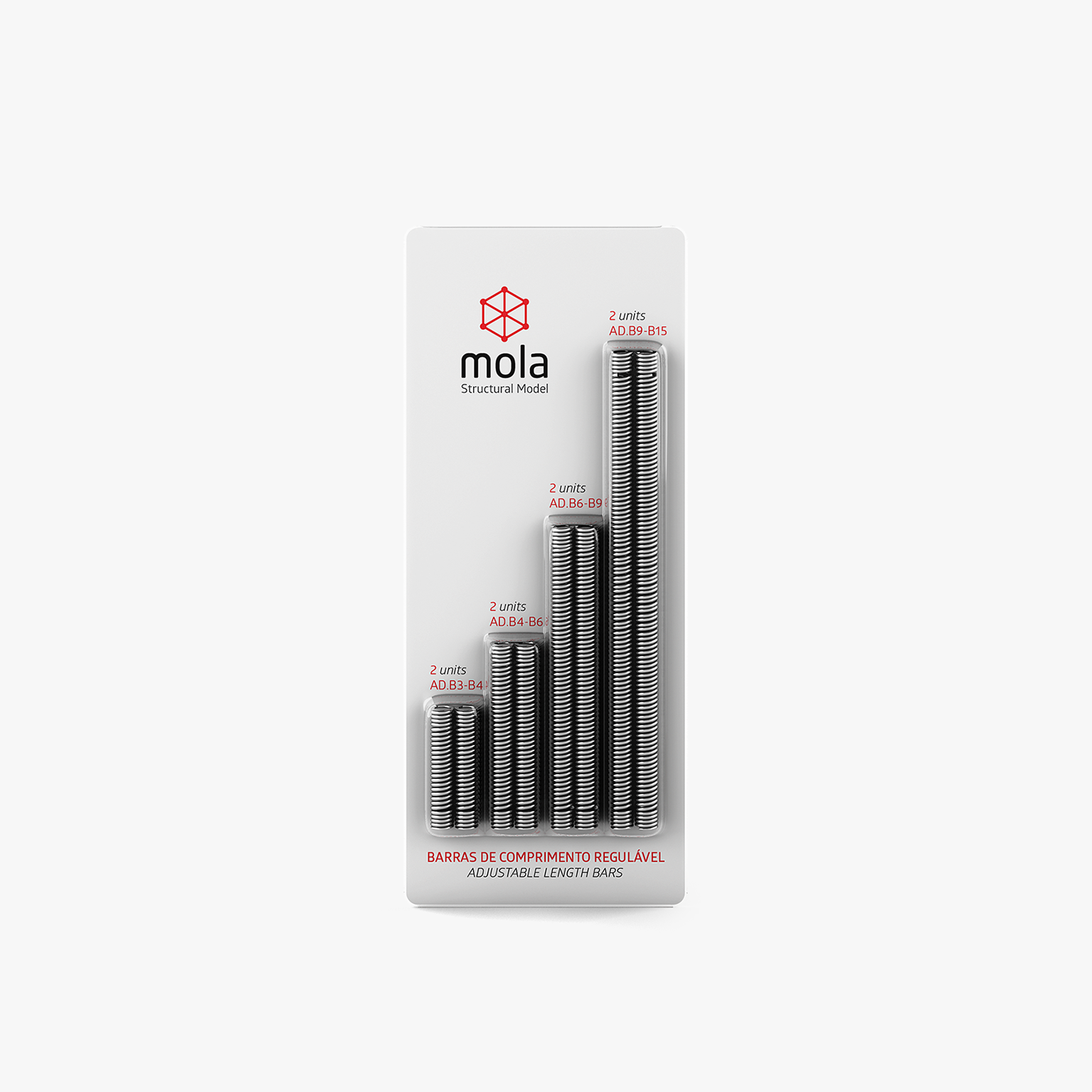 Cada Kit Estrutural Mola contém peças únicas que permitem a montagem de diferentes estruturas e a exploração de diferentes conceitos. No entanto, como todos os Kits são compatíveis entre si, também é possível misturar peças para criar e explorar novas estruturas.