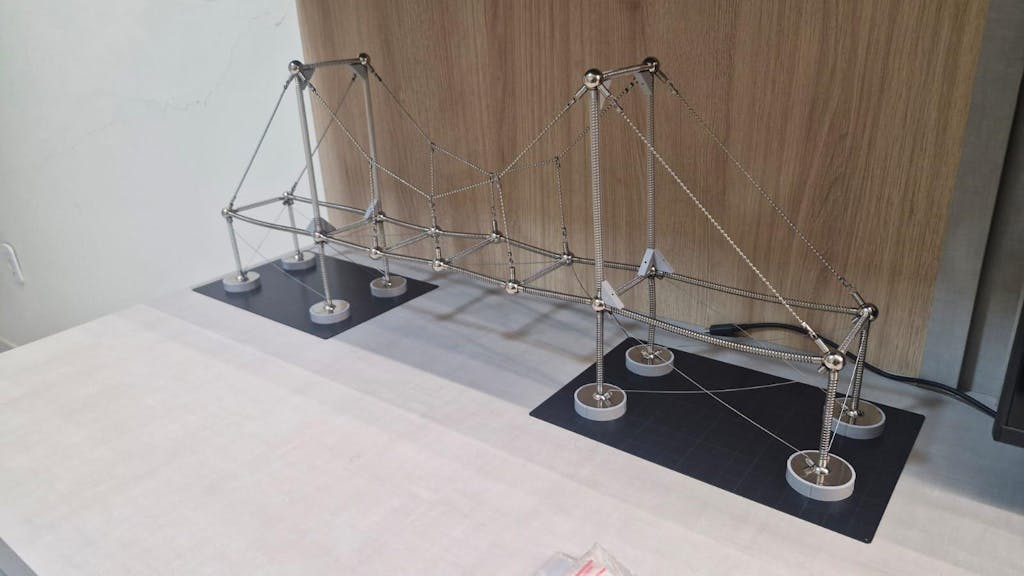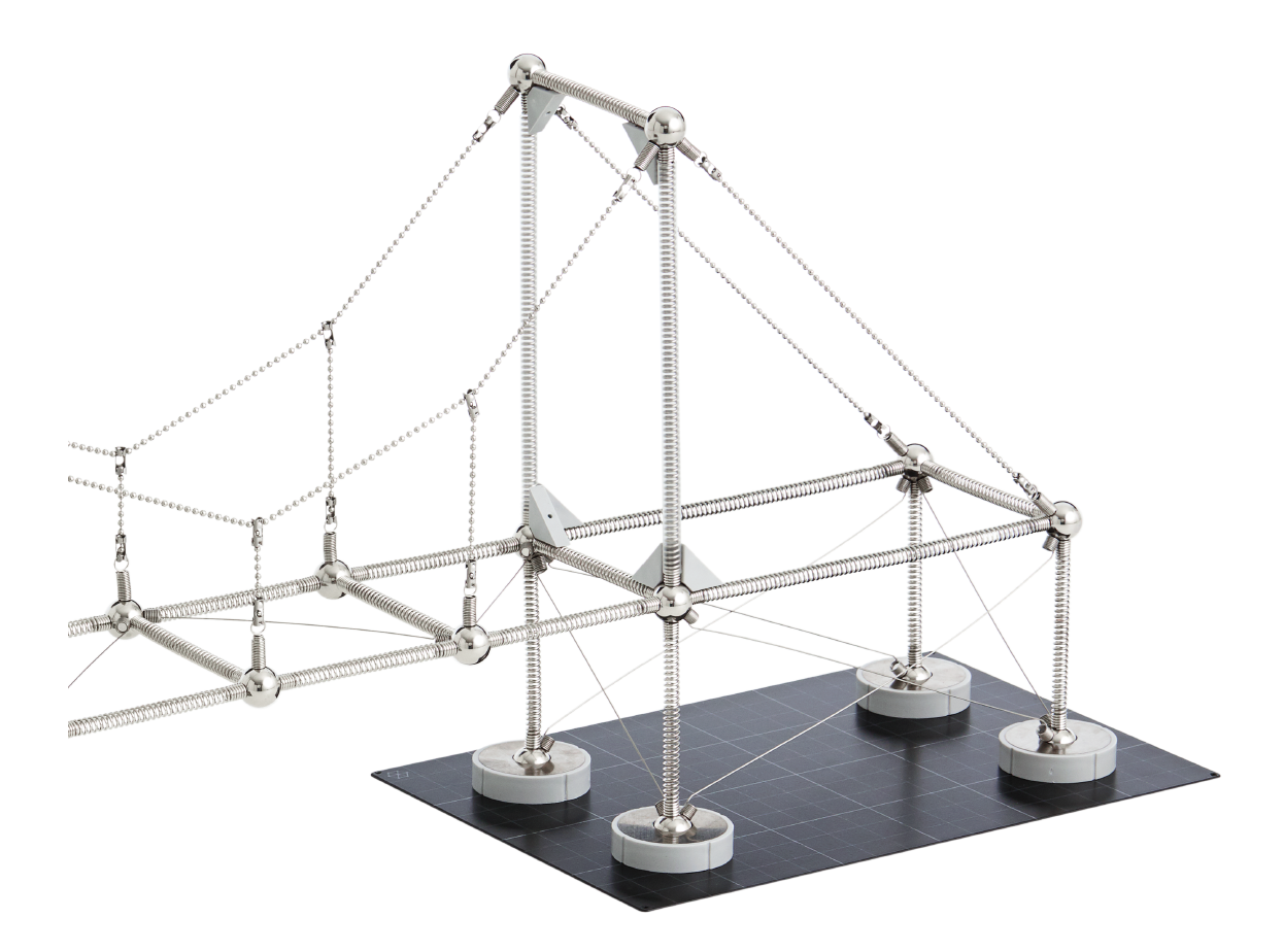 Se você gosta de pontes e elementos de cabos, o Kit Estrutural Mola 3 é a escolha perfeita para você. Descubra uma forma lúdica e tangível de aprender sobre formas funiculares, sistemas de malha de cabos, pontes estaiadas e suspensas, tensegrity, form-finding, e muito mais.